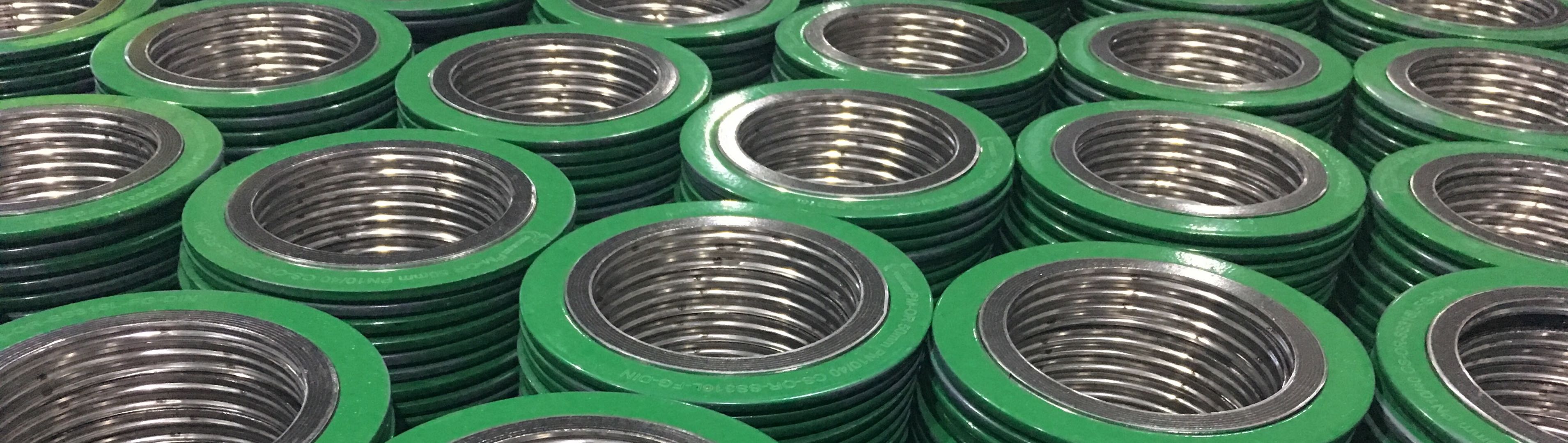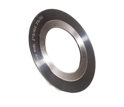 金屬纏繞墊由V型金屬帶和非金屬帶狀填料交替纏繞而成,通常非金屬帶狀填料的材料有:石墨、PTFE或Novus Hi-Temp等材料。其中,金屬帶讓墊片有回彈性,非金屬帶狀填料墊片有氣密性。根據(jù)使用情況的要求,纏繞部位的內(nèi)外徑方向帶有緊固或定位的內(nèi)外金屬環(huán)。這樣的結(jié)構(gòu)讓墊片在溫度和壓力波動較大的惡劣工況下能有效密封。