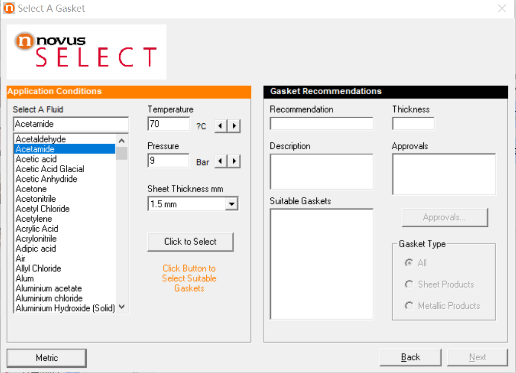 墊片和連接材料的快速、便捷的選型系統(tǒng)